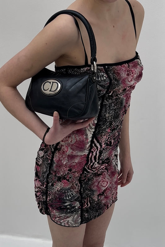 Vintage Black Leather & Silver CD Logo Shoulder Bag