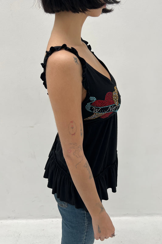 Vintage Black Strass Detail Top