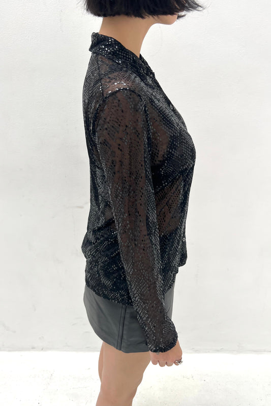 Vintage Black Shiny Snake Blouse