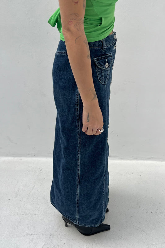 Vintage Denim Button Up Maxi Skirt