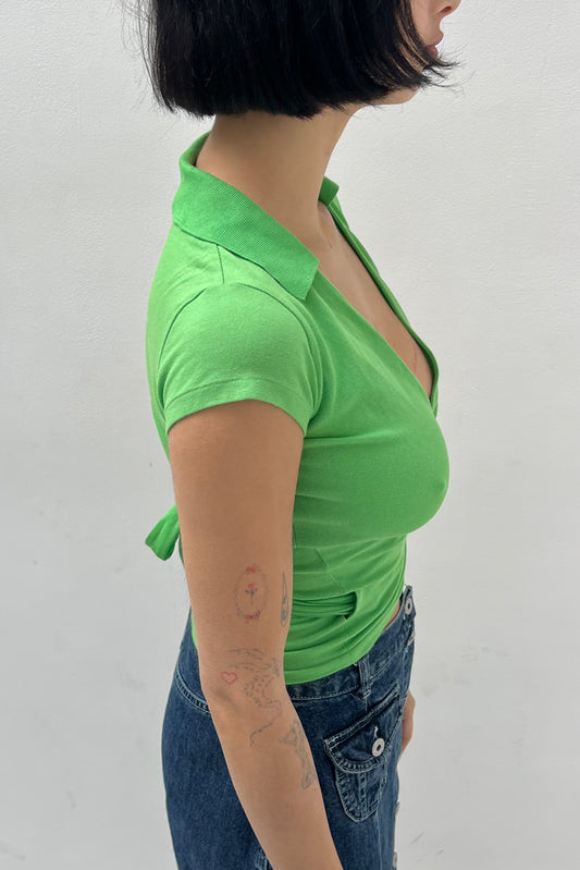Vintage Green Wrap Polo Top