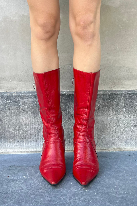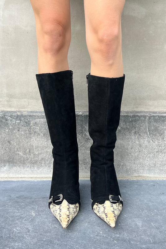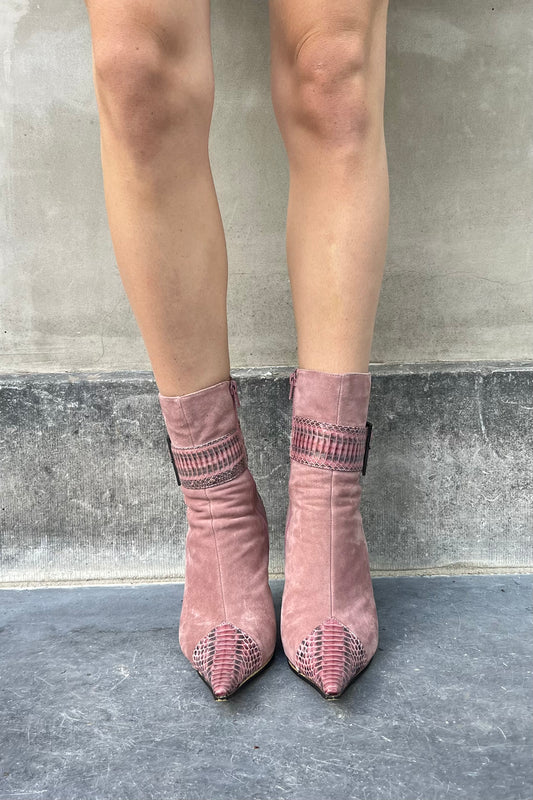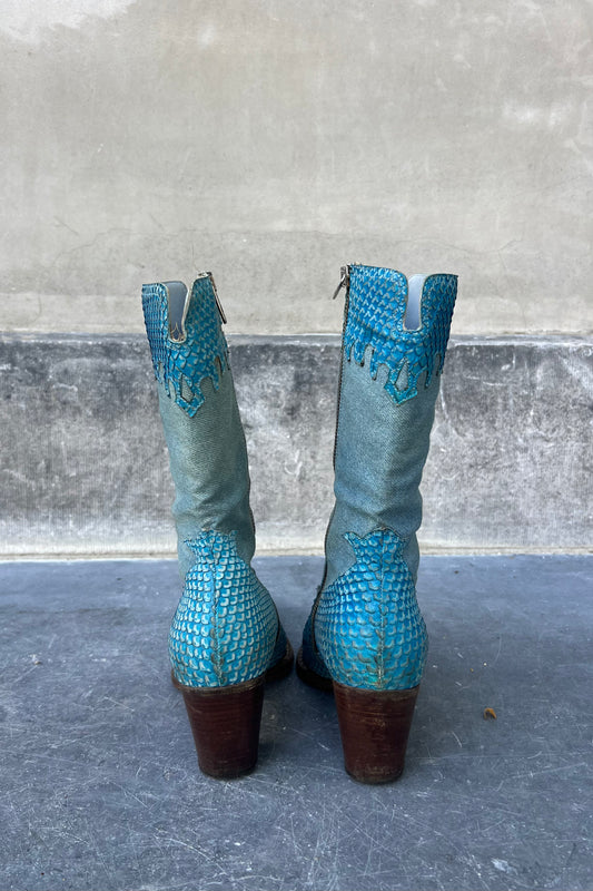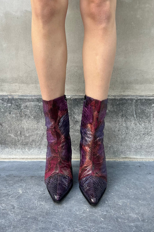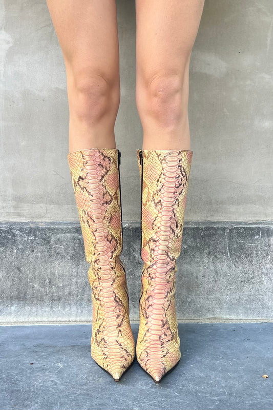 Vintage Python Pink & Yellow Melange Pointy Toe Boots 40