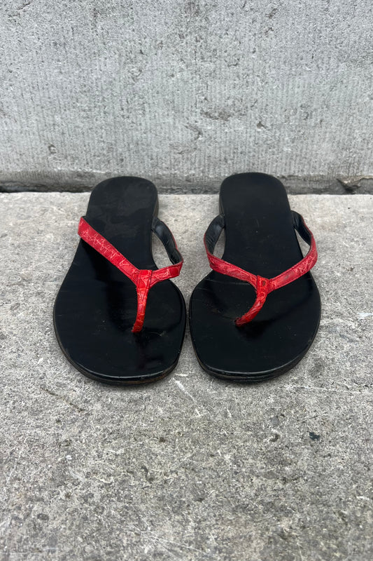 Vintage Red Croco Thong Sandals 37