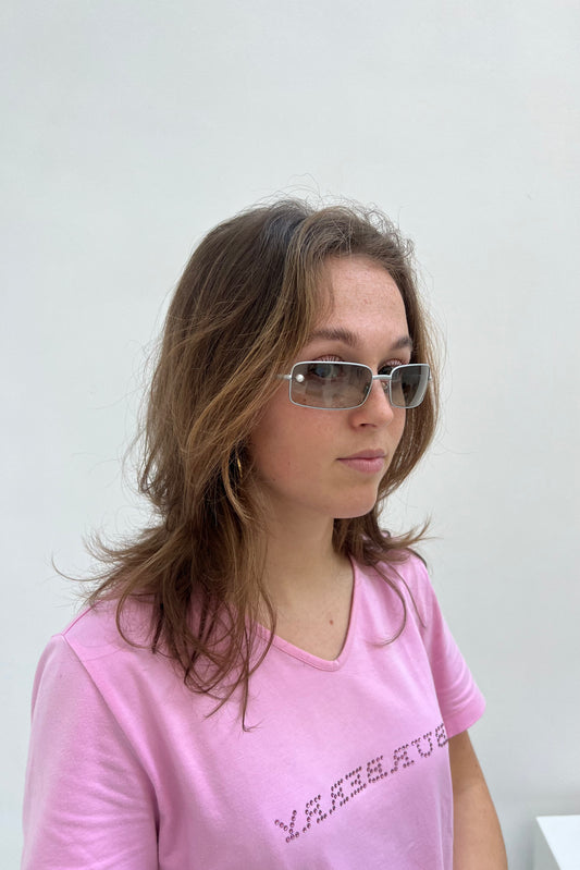Rectangular Silver Brushed Pearl Detail Sunglasses