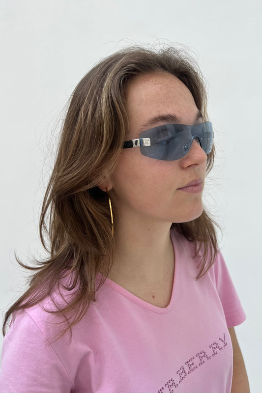 Vintage Squared Mirror CC Strass Logo Sunglasses