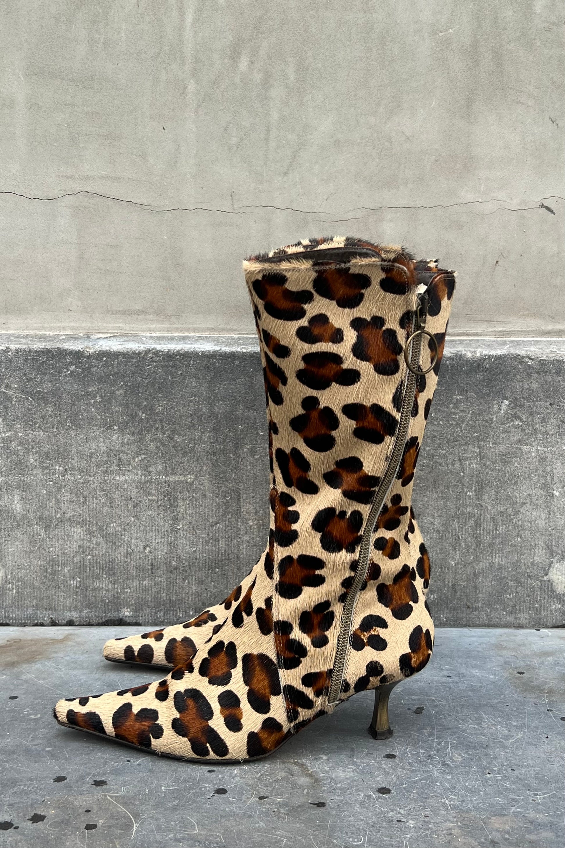 Vintage Leopard Pointy Toe Calf Skin Boots 36