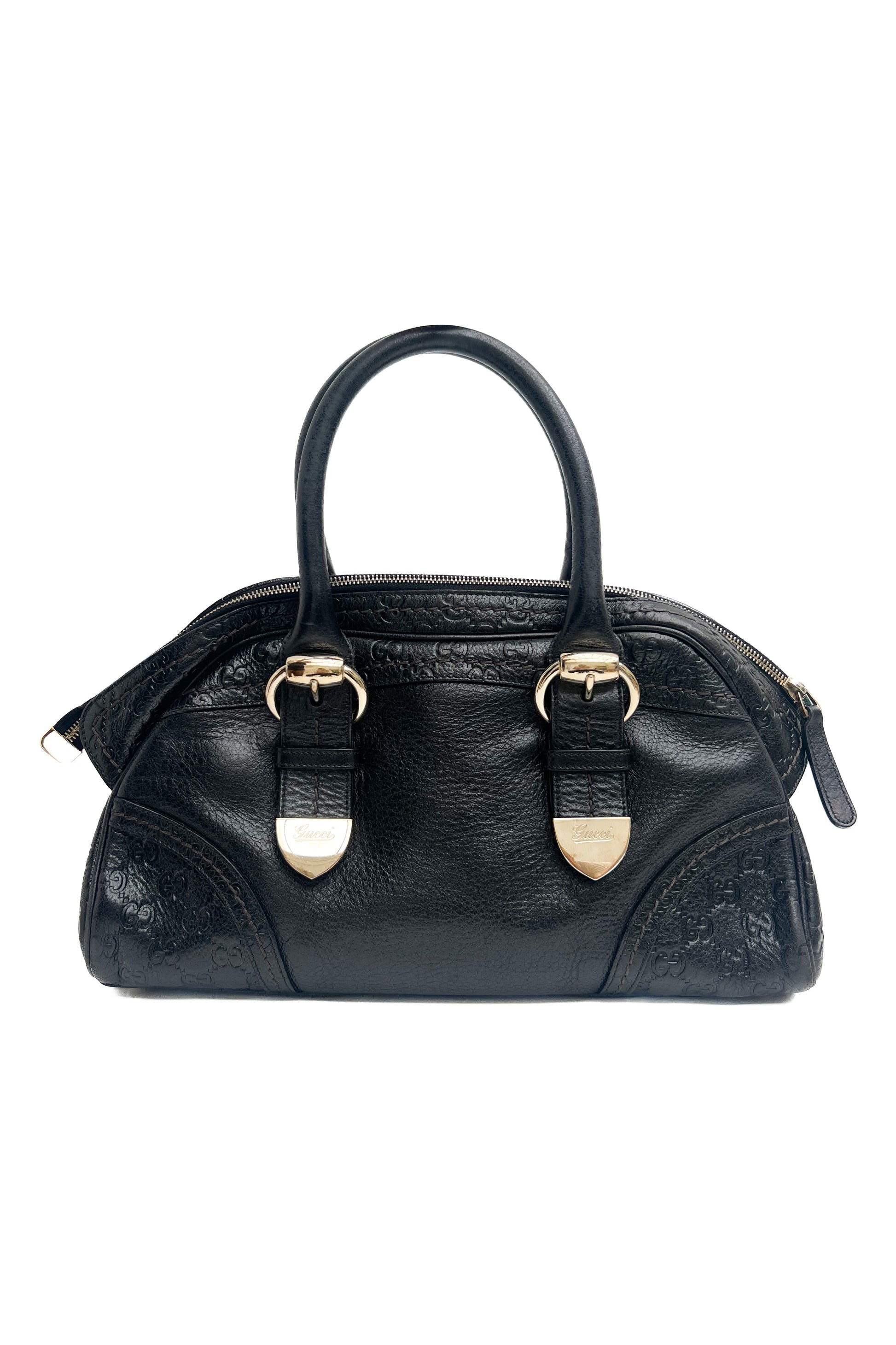 Vintage Black Leather Guccisima & Golden Hardware Handbag
