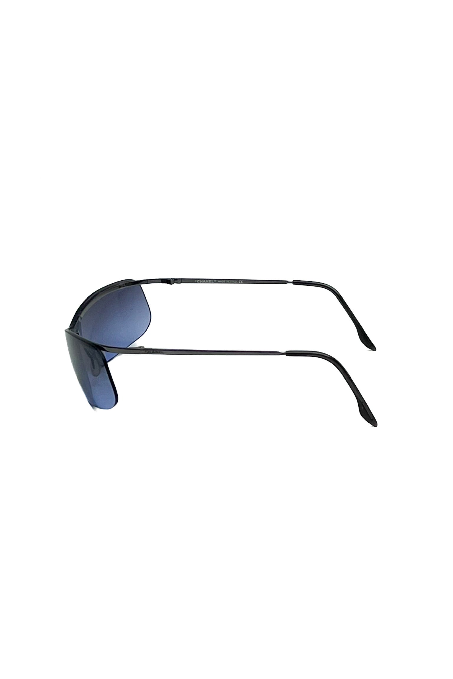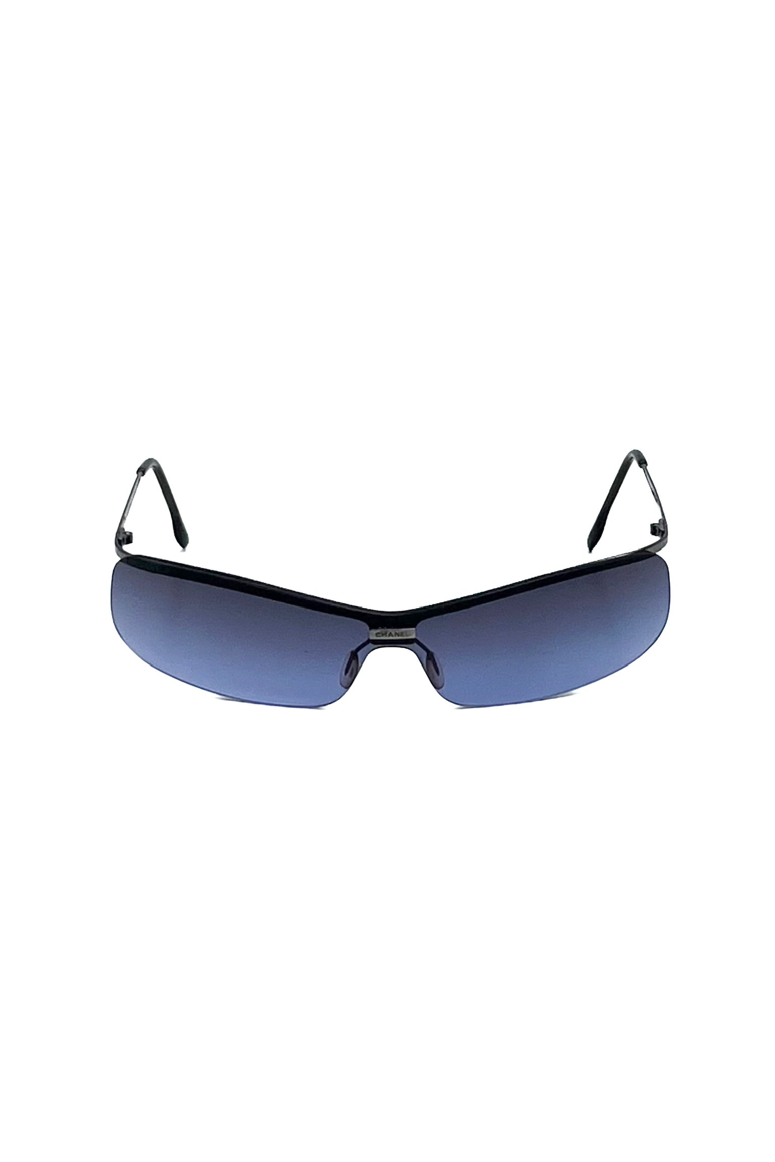 Vintage Chanel rimless sunglasses with purple gradient lens and a silver.