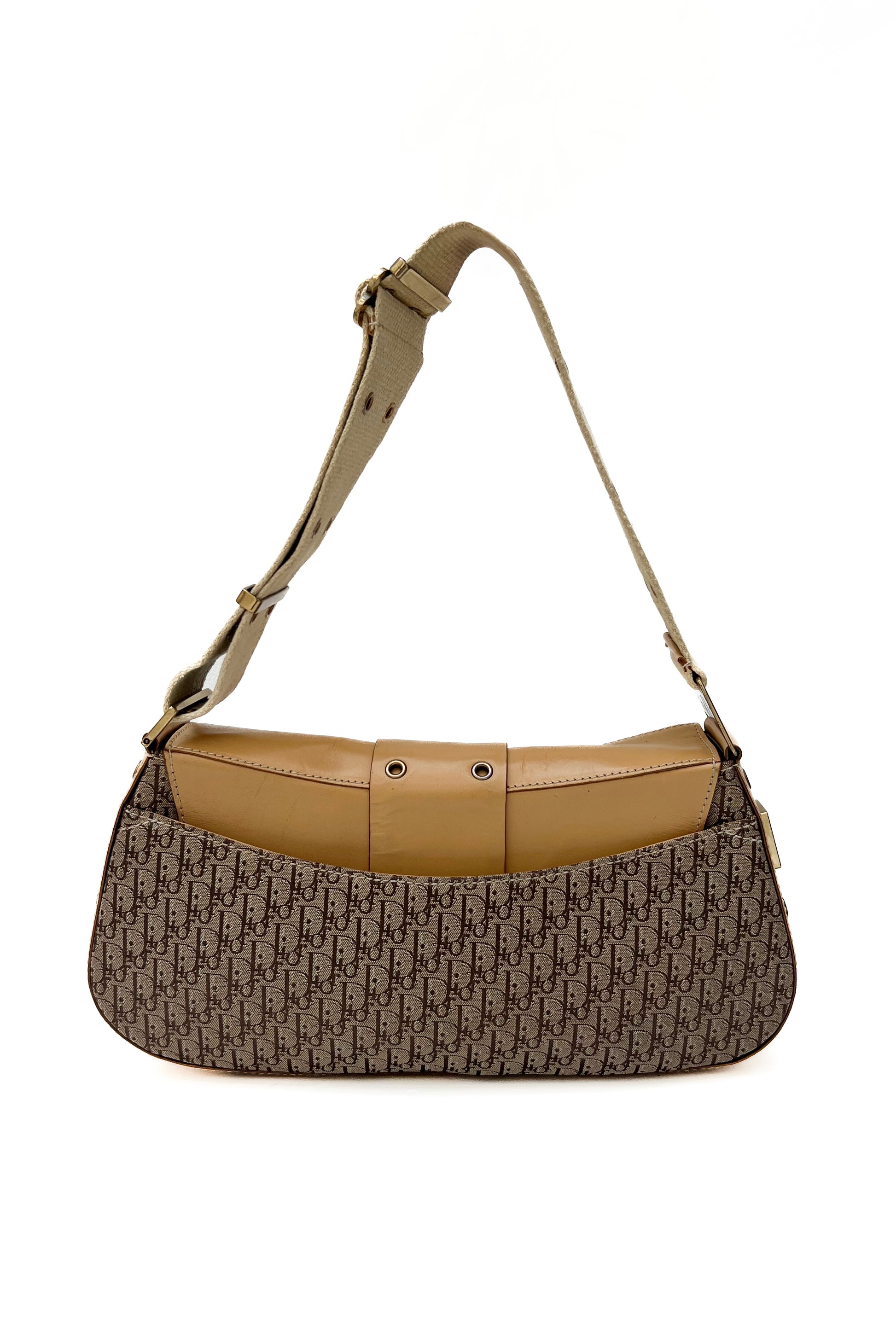 Vintage Christian Dior Columbus bag with a classic monogram print. Features golden logo in the front and cream leather flap & details.