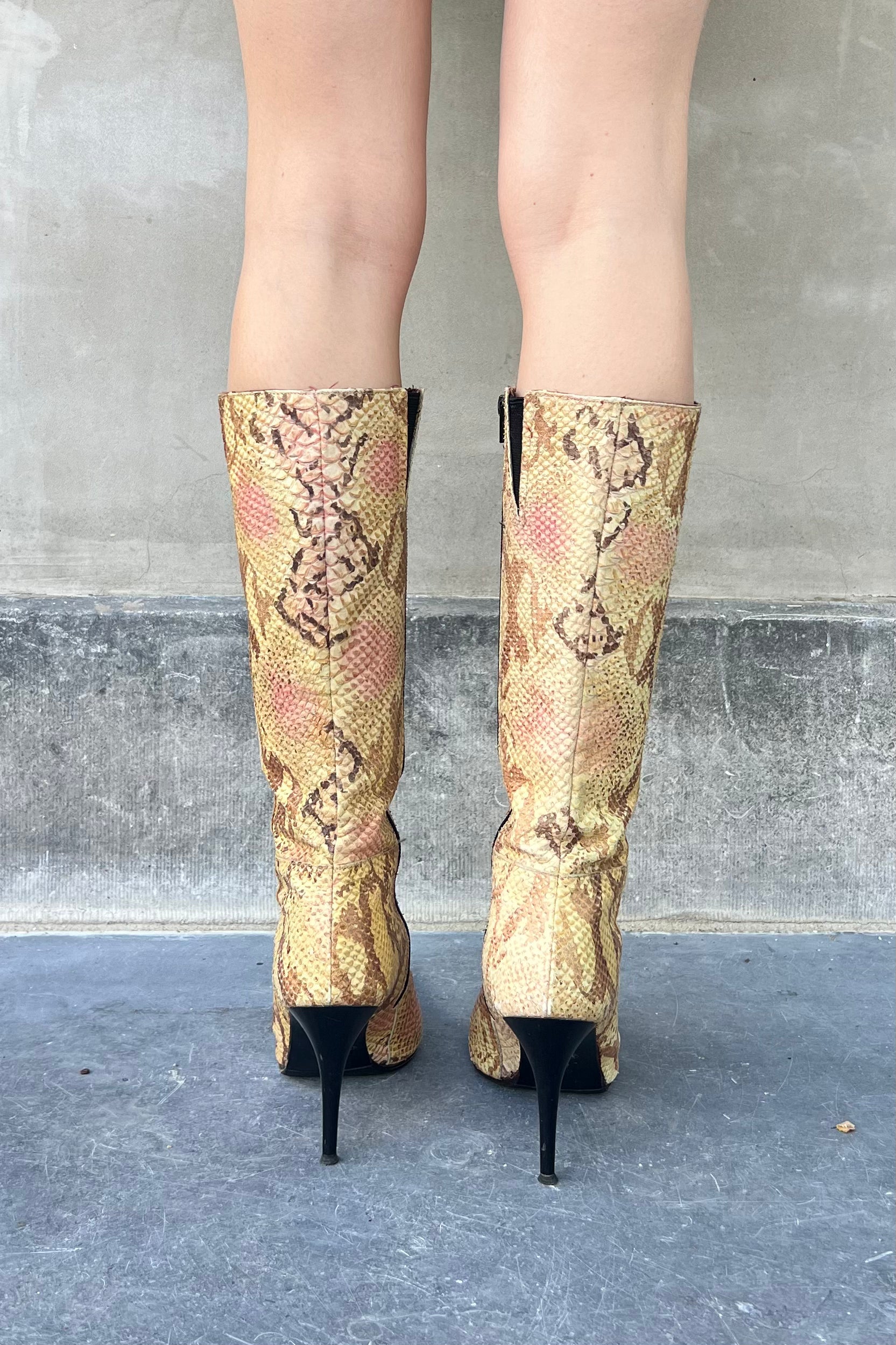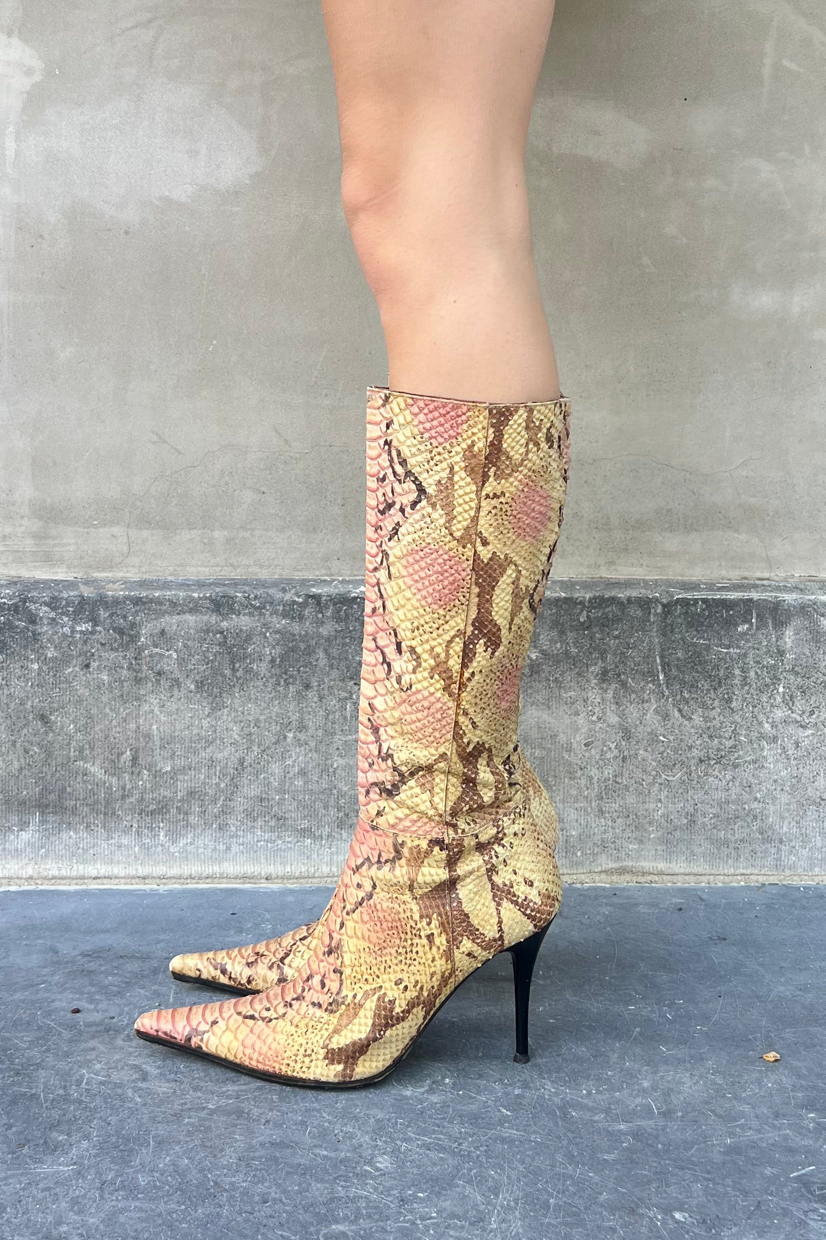 Vintage Python Pink & Yellow Melange Pointy Toe Boots 40