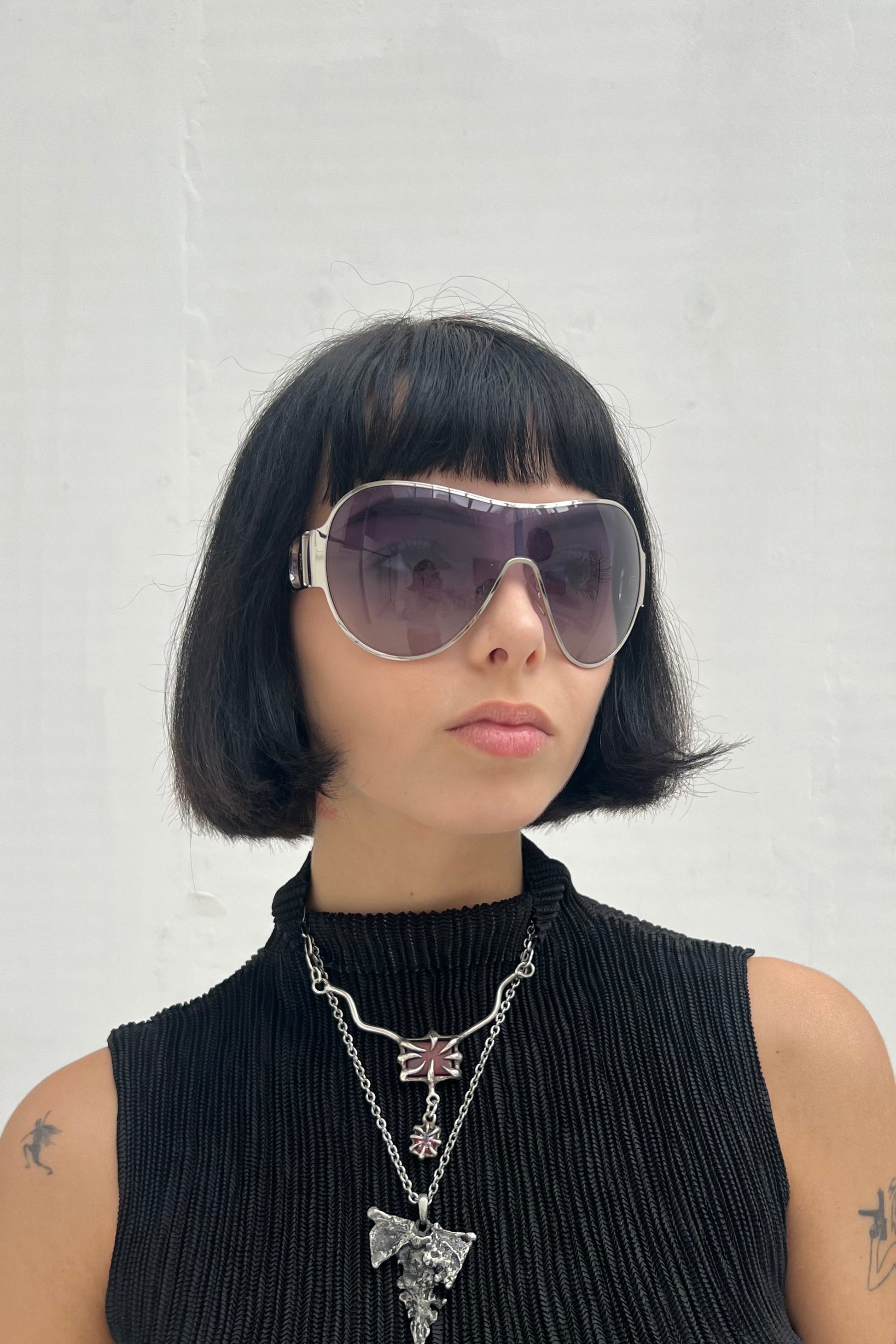 Vintage Silver Frame Pilot Mask Sunglasses -