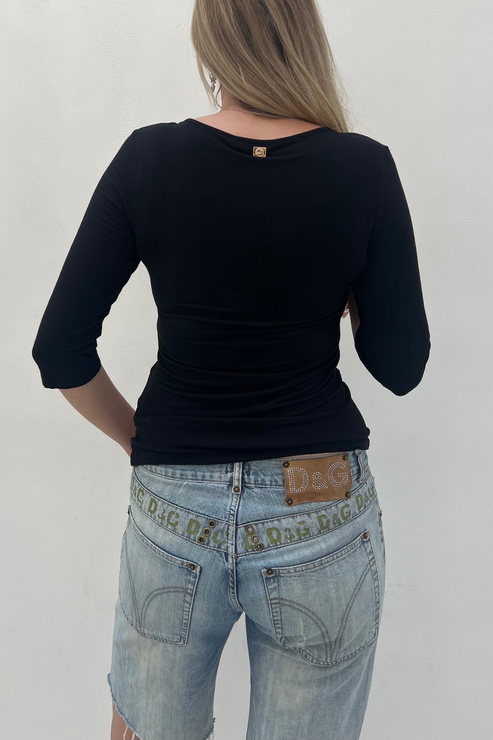 Vintage black Cavalli 3/4 sleeve top with beautiful leopard & flower print.