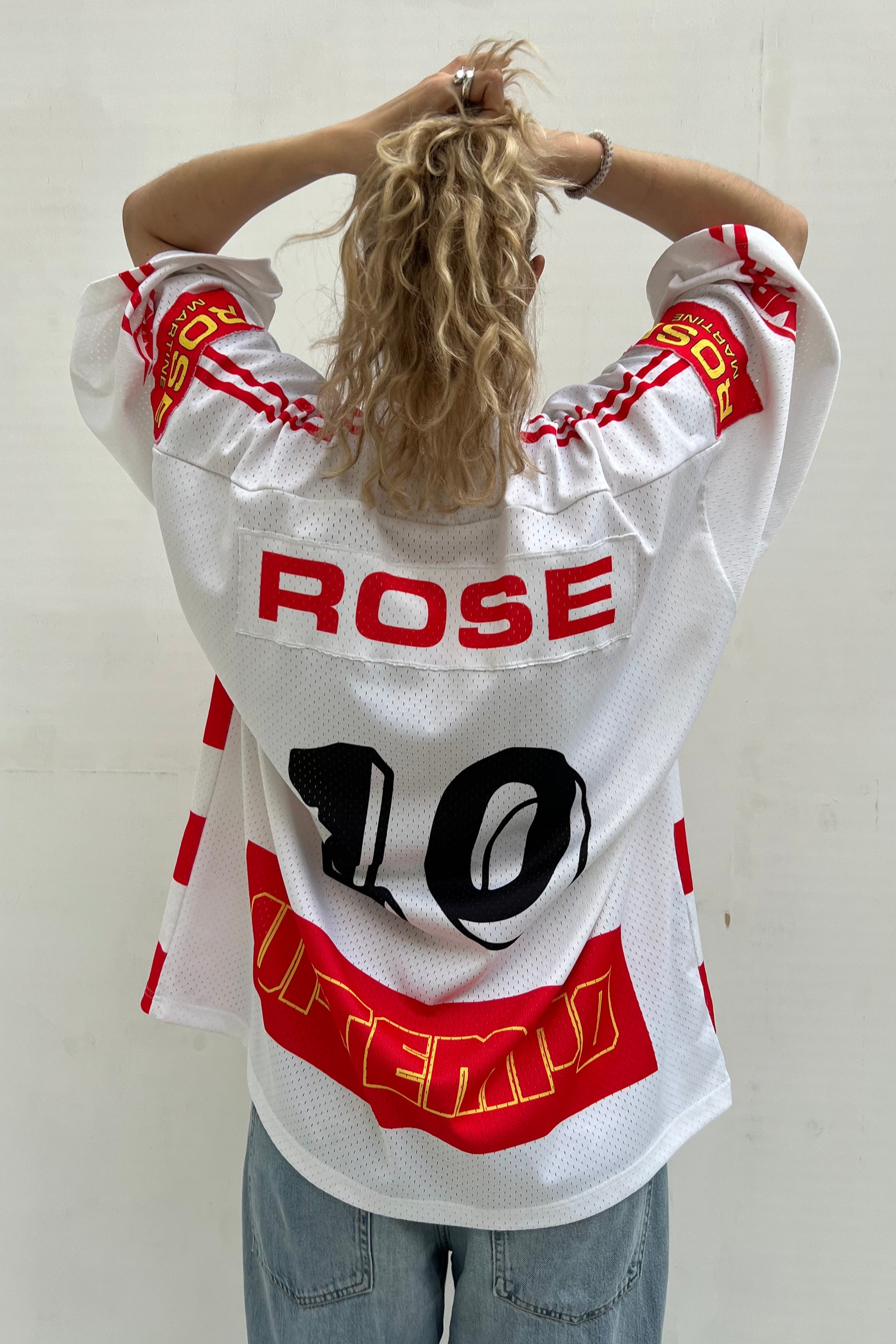 Martine Rose oversized jersey tee. Features two patches on the sleeves.