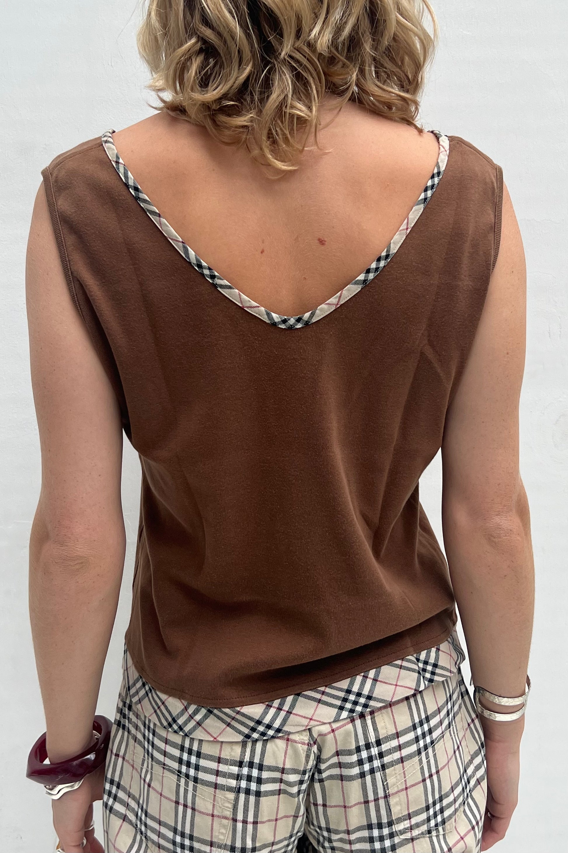 Vintage Burberry tank top made of heavy cotton fabric. The top has a classic Burberry printed finish on the collar and the bottom.