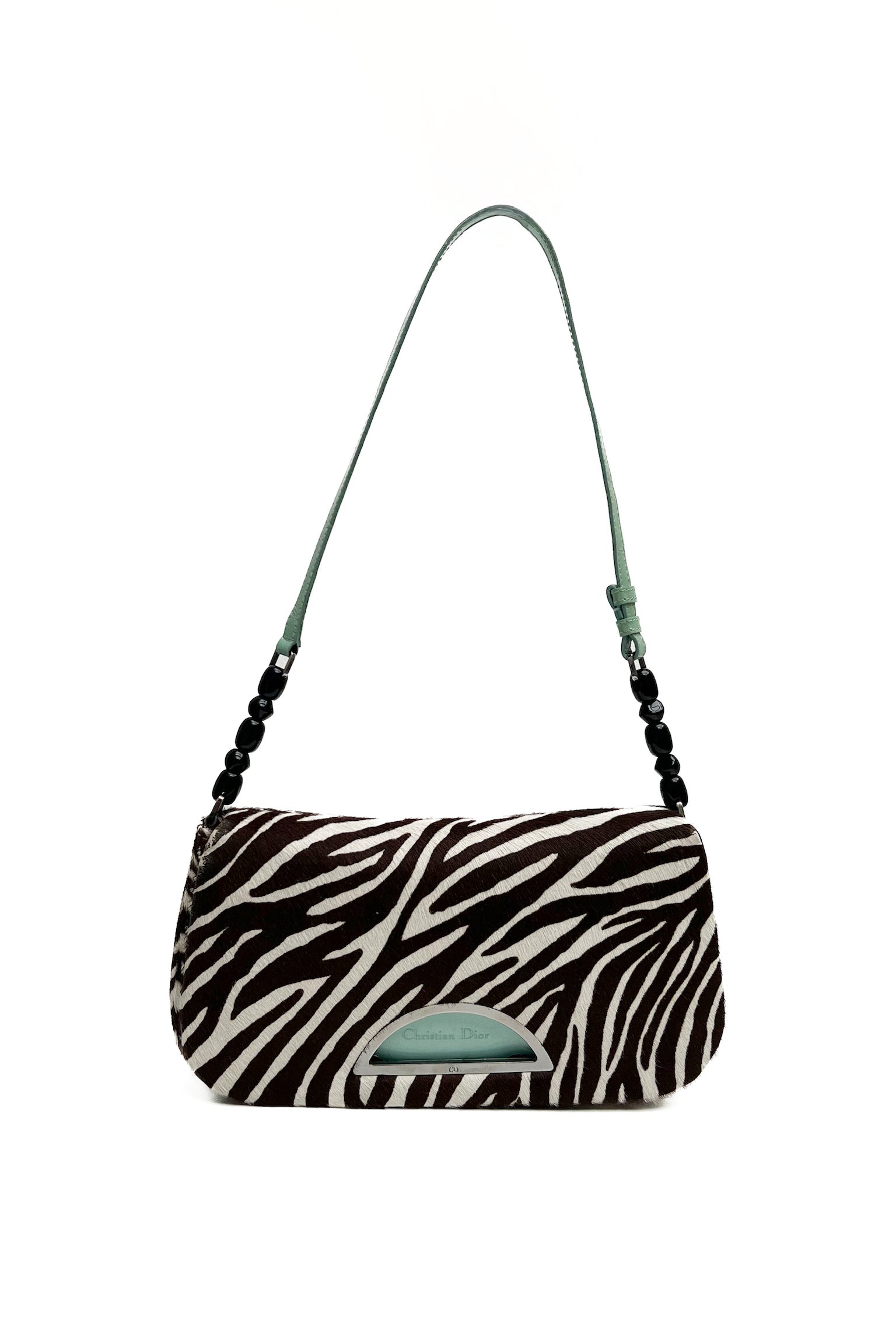 Vintage Christian Dior Fall/Winter 1999's famous Malice shoulder bag in zebra-printed cavallino leather. Features turquoise details, beaded handle accents, and it comes with the original dust bag.