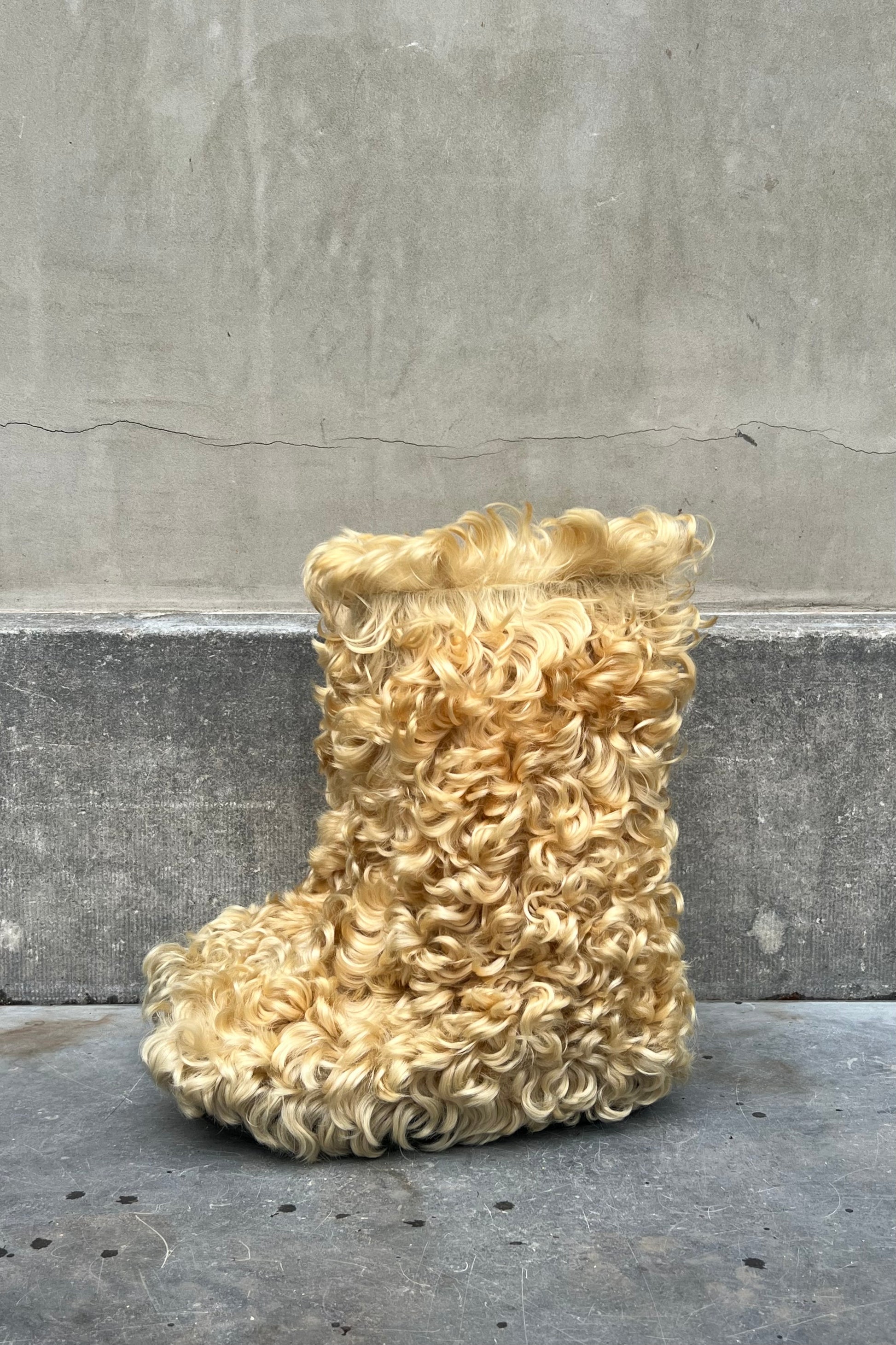 Vintage yeti snow boots. Designed with super soft fluffy faux fur in a beige/golden tone.